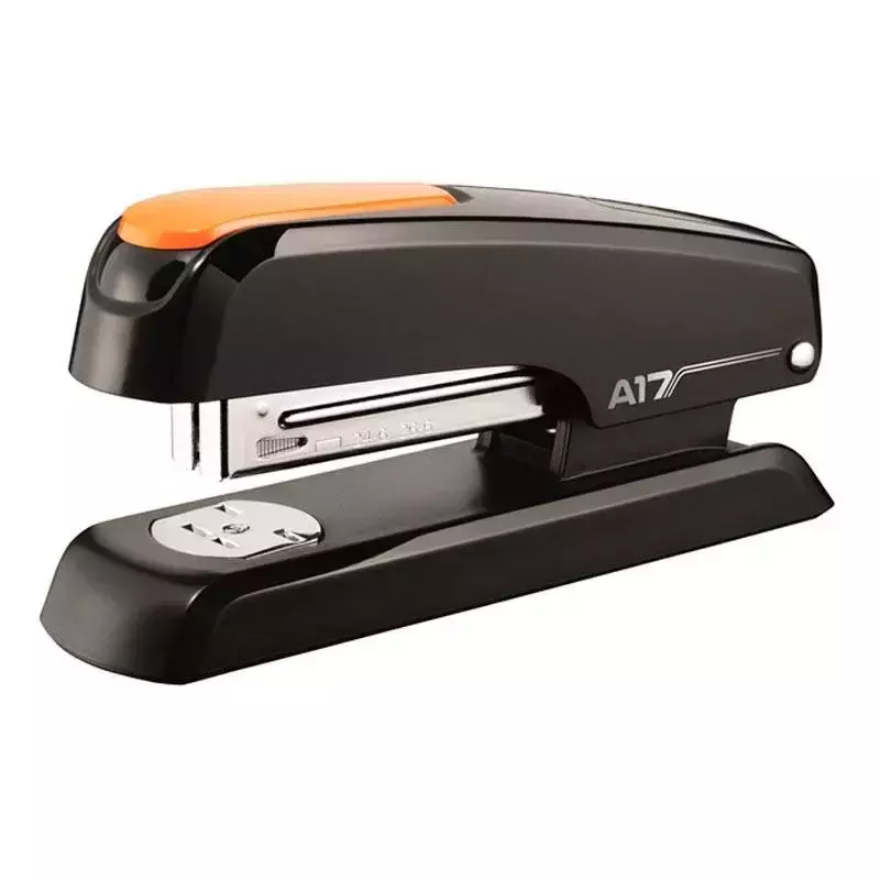 Descrição: Seja no escritório, em casa ou na escola, o Grampeador Universal A17 da Maped é o companheiro confiável para manter seus documentos organizados de forma eficaz. Este grampeador é projetado para durar, com uma estrutura de metal sólido que garante grampeamentos precisos e confiáveis a cada uso. Utiliza grampos 26/6 e 24/6, amplamente disponíveis, para maior conveniência. Com uma largura de 40 mm, altura de 68 mm e comprimento de 137 mm, este grampeador se encaixa facilmente em sua área de trabalho. Além do grampeamento padrão, ele também oferece a função de tacheamento (abertura de 180º) e grampeamento temporário, tornando-o versátil para atender às suas necessidades específicas. Uma janela integrada permite que você verifique o nível de grampos restantes, para que nunca fique sem grampear na hora certa. A base revestida de borracha macia oferece estabilidade e evita que o grampeador escorregue durante o uso.