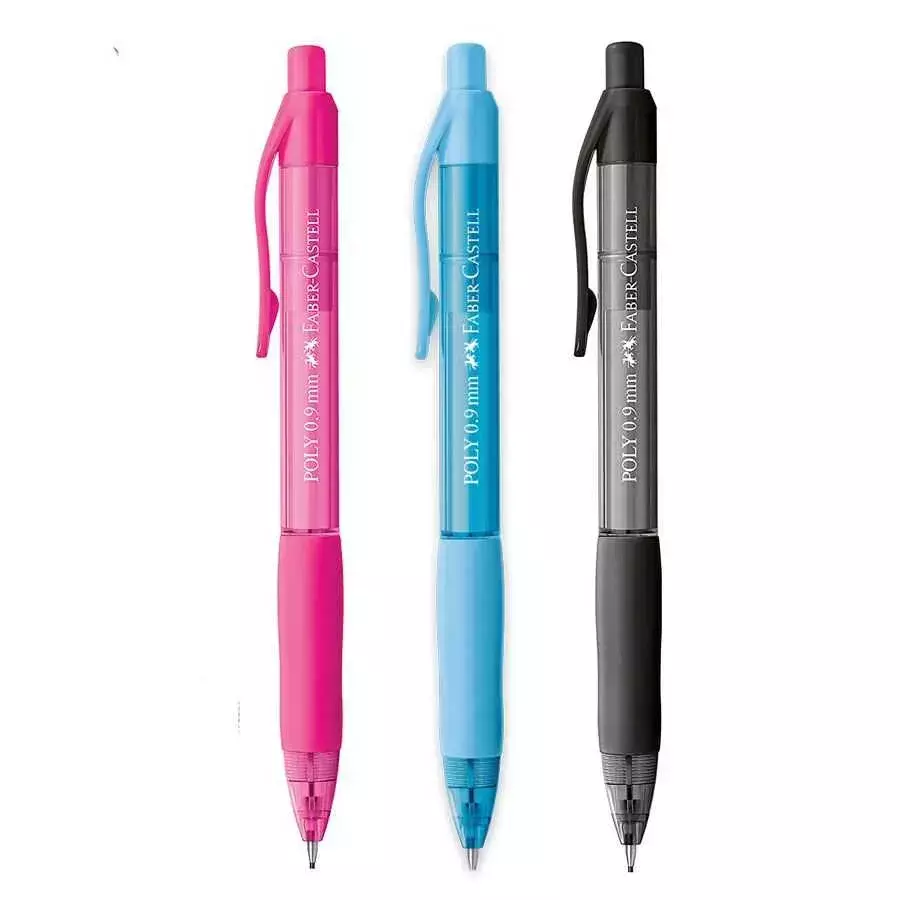 Lapiseira 0.9mm Faber Castell Poly vem com Grip Emborrachado para um maior conforto na escrita.